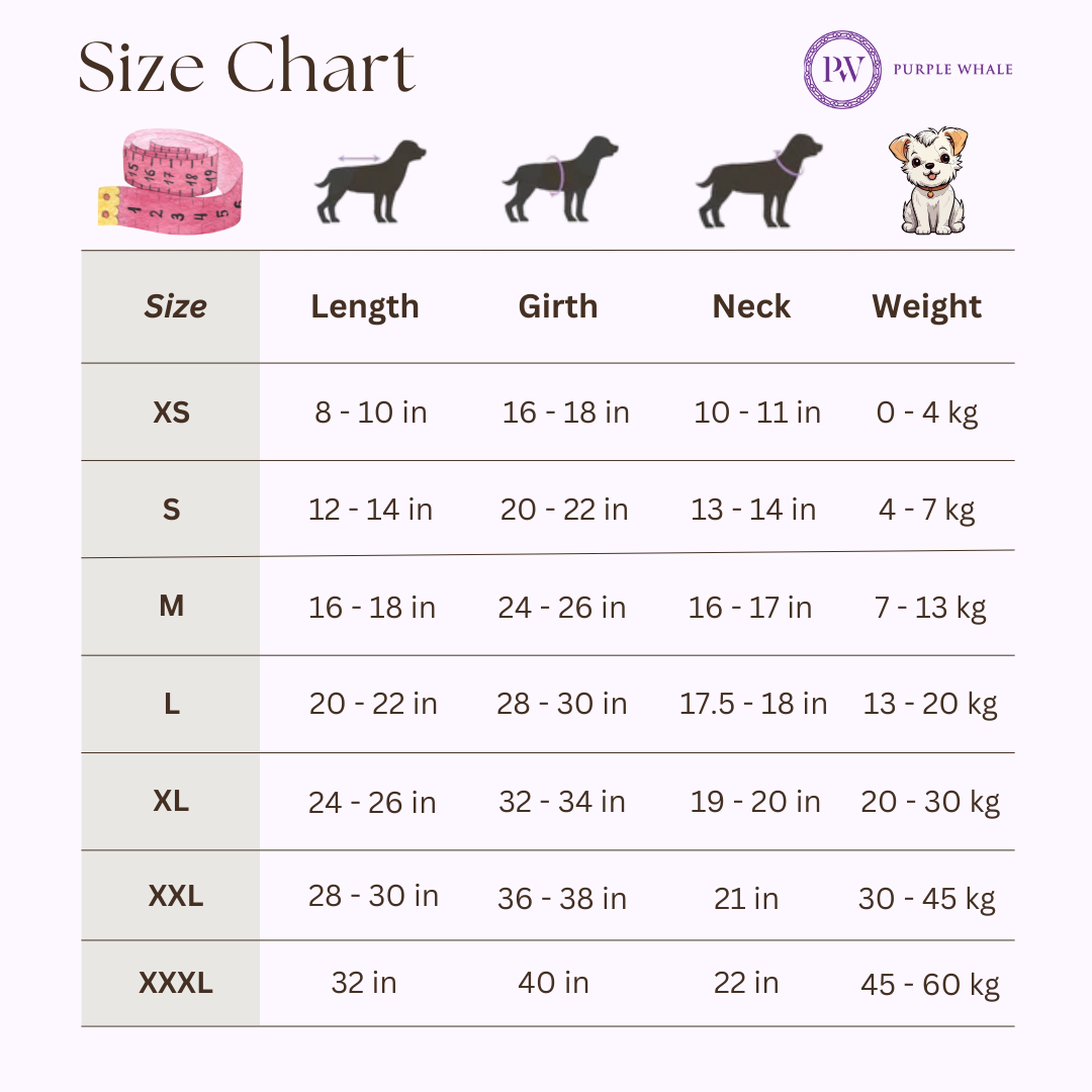 Our Dog Raincoats come in sizes Medium (M), Large (L) and Extra Large (XL) to fit a wide range of breeds. Refer to our size chart for chest, girth, and neck measurements.